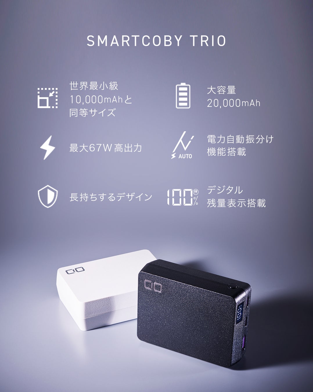 Makuakeをきっかけに大ベストセラーとなったCIOのモバイルバッテリー SMARTCOBYシリーズに圧倒的なコンパクトさとパワフルさを兼ね備えた新作モバイルバッテリー『SMARTCOBY TRIO』が登場!