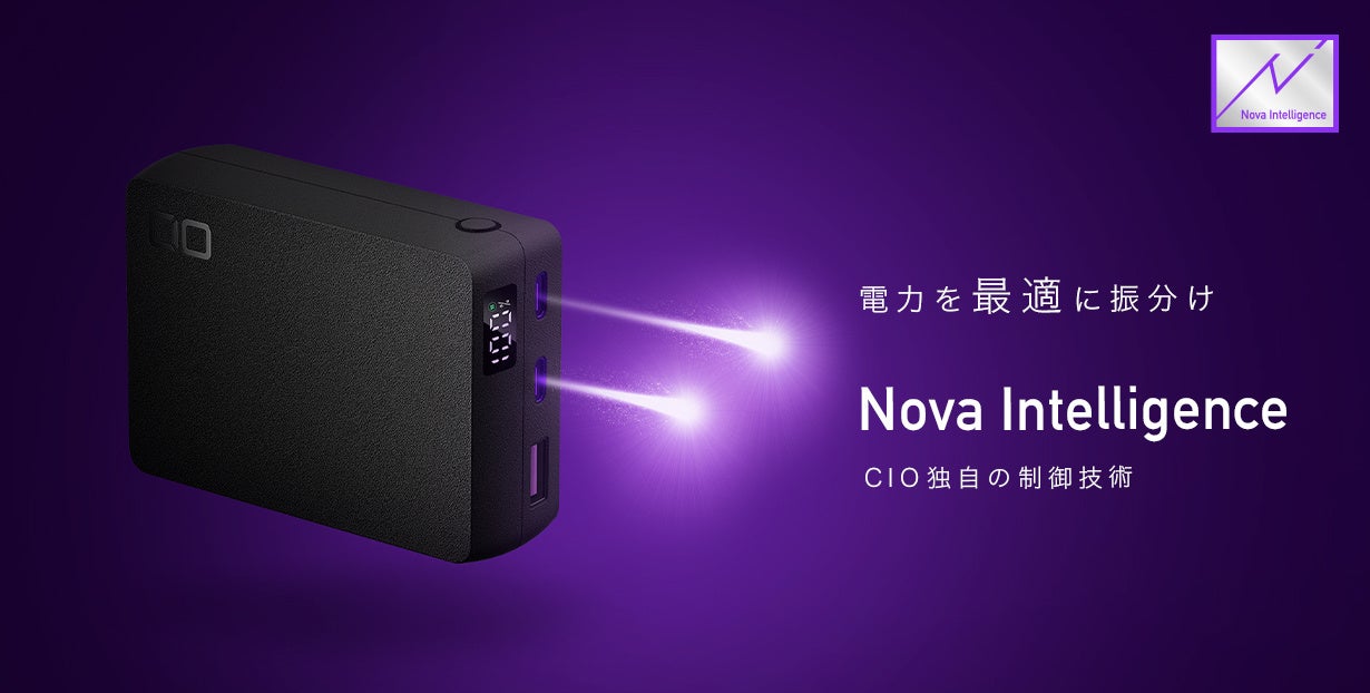 従来の複数ポート搭載のモバイルバッテリーの場合、ポートによって出力が固定化されたものが多く、ポートを挿し間違えると低速充電になったり、PCであれば充電出来なくなる事もありますが、このCIO独自技術『Nova Intelligence』は接続されたデバイスに合わせた最適な電力を瞬時に判別。ポートの差込口によりデバイスを選ぶ必要がありません。