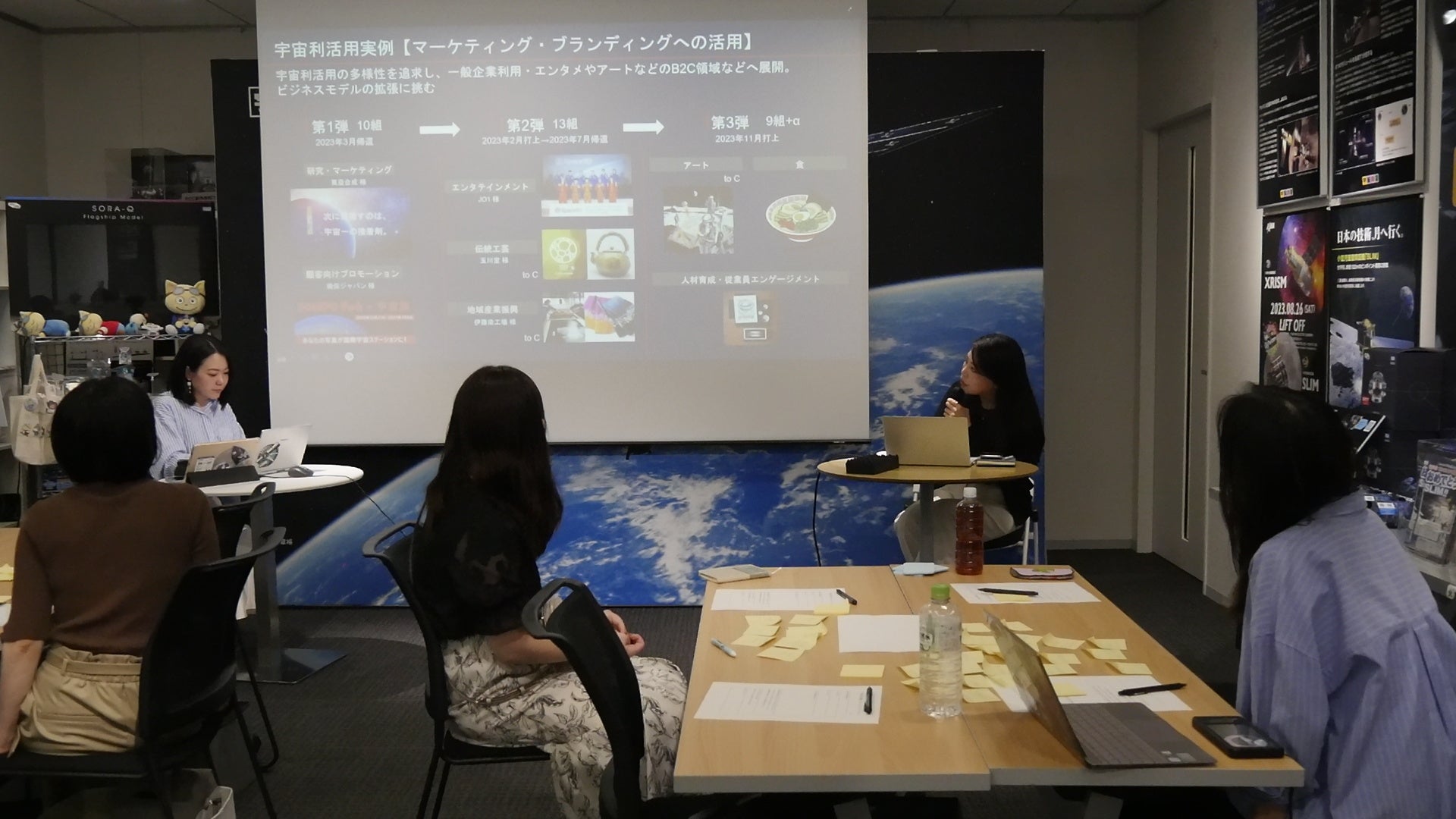 今回のワークショップではゲストに宇宙インフラ、宇宙利用ビジネス、宇宙×教育などの宇宙産業のサービスを提供するSpace BD 株式会社を招き、宇宙業界での仕事についてお話しいただき、キャリアを参加者と一緒に考える時間となりました。