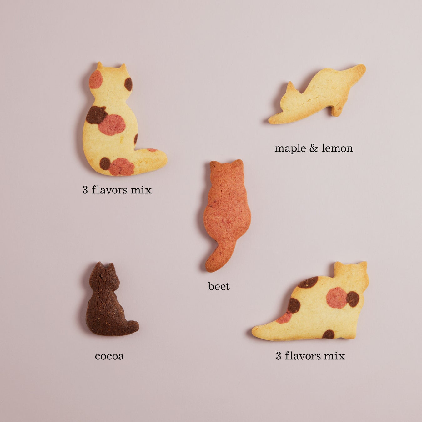フレーバー:白猫(プレーン)、茶猫(ココア風味)、ピンク猫(ビーツ&レモン風味)