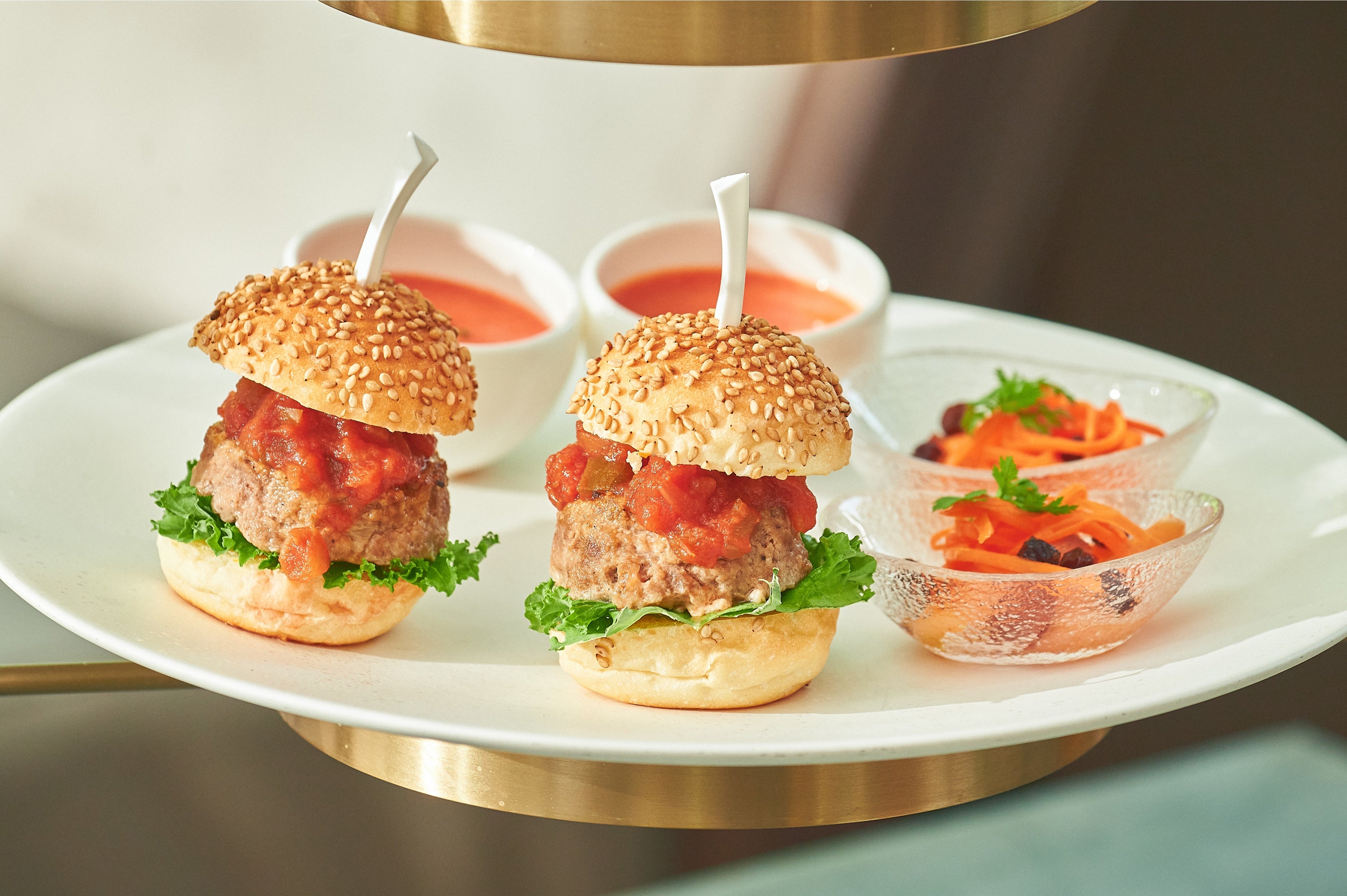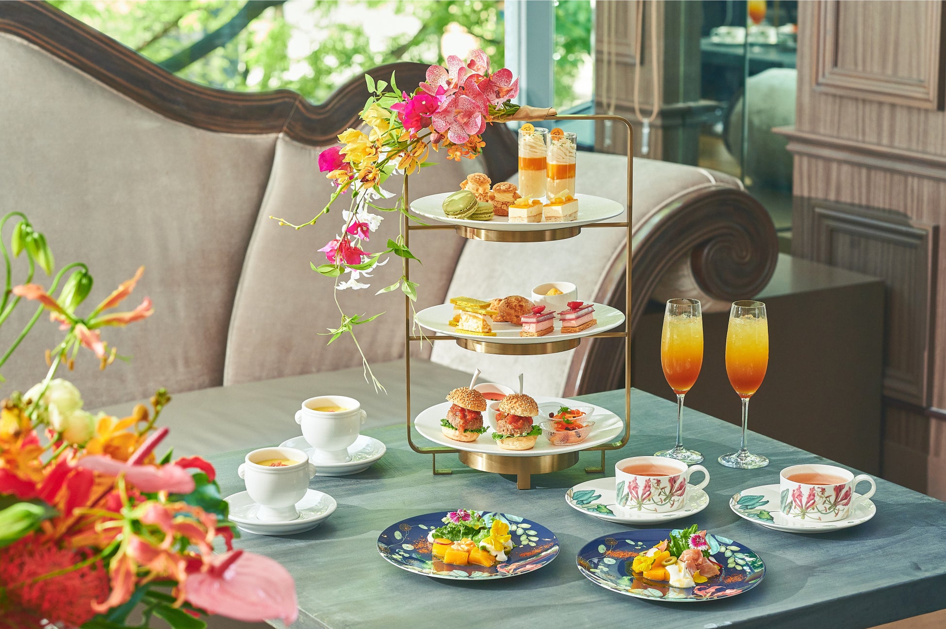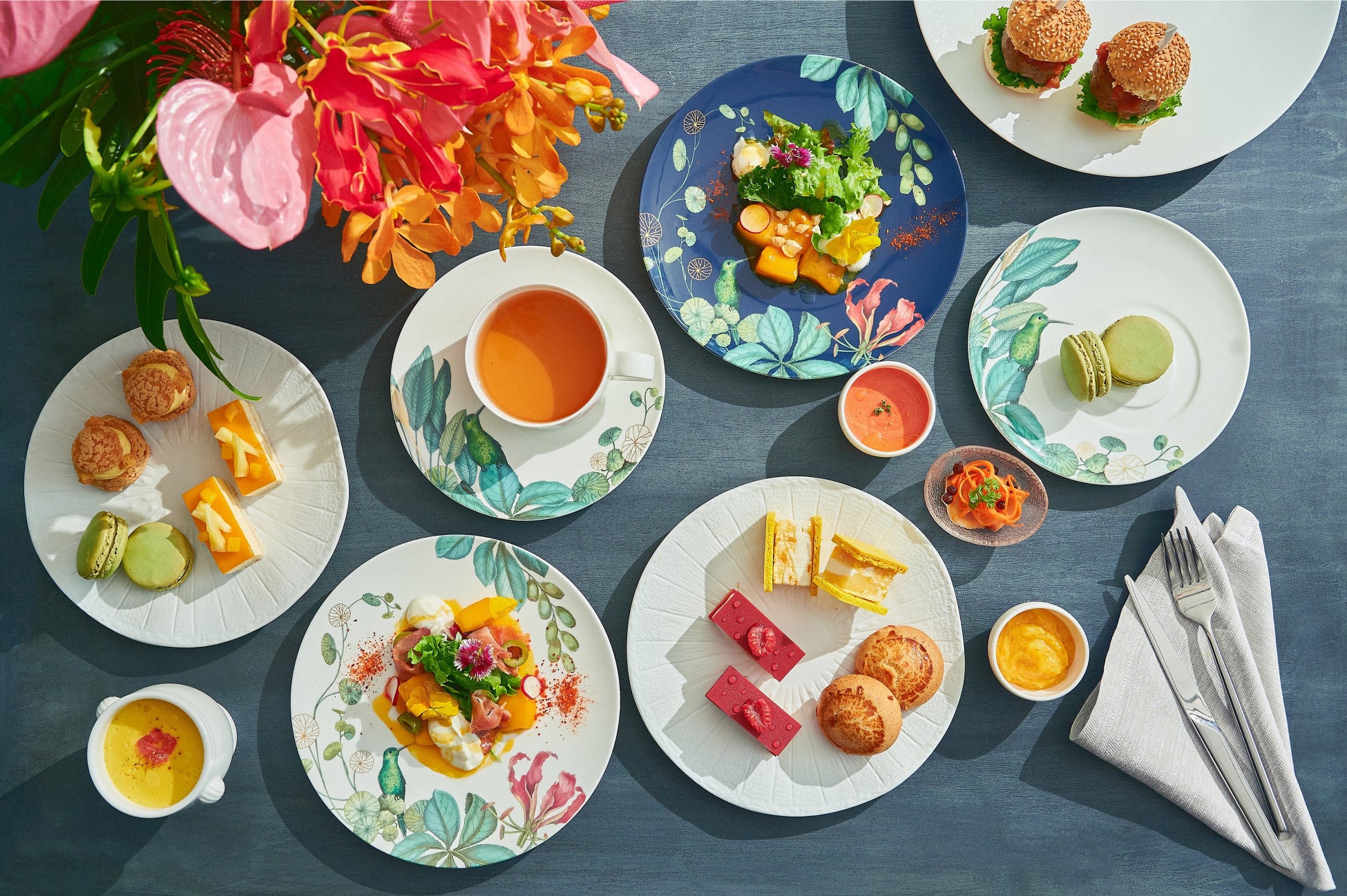 そのデザインからインスピレーションを受け、マンゴーやパッションフルーツ、パイナップルなどのトロピカルフルーツを使用した南国を彷彿とさせるピエール・エルメ・パリのスイーツと、タバーンオリジナルのセイボリーをご用意いたしました。