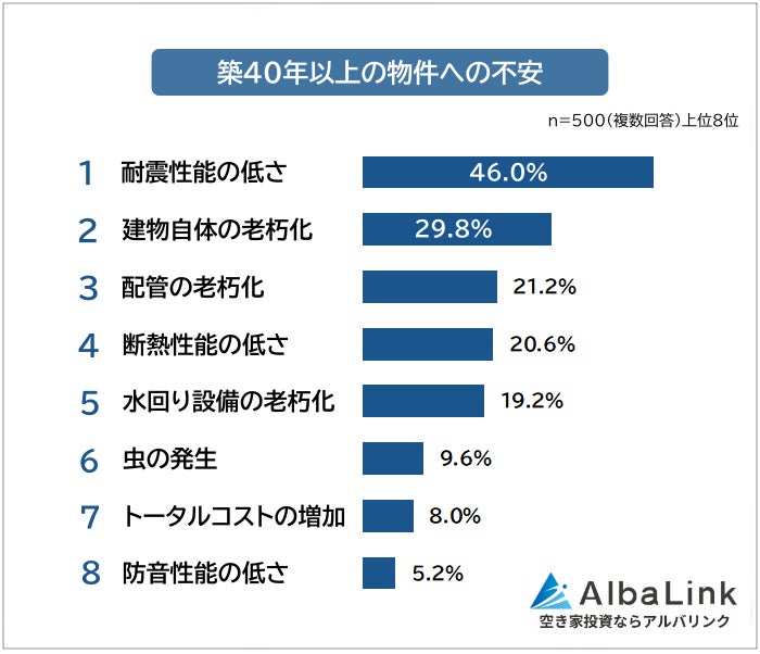 ・築40年以上の物件への不安1位は「耐震性能の低さ」