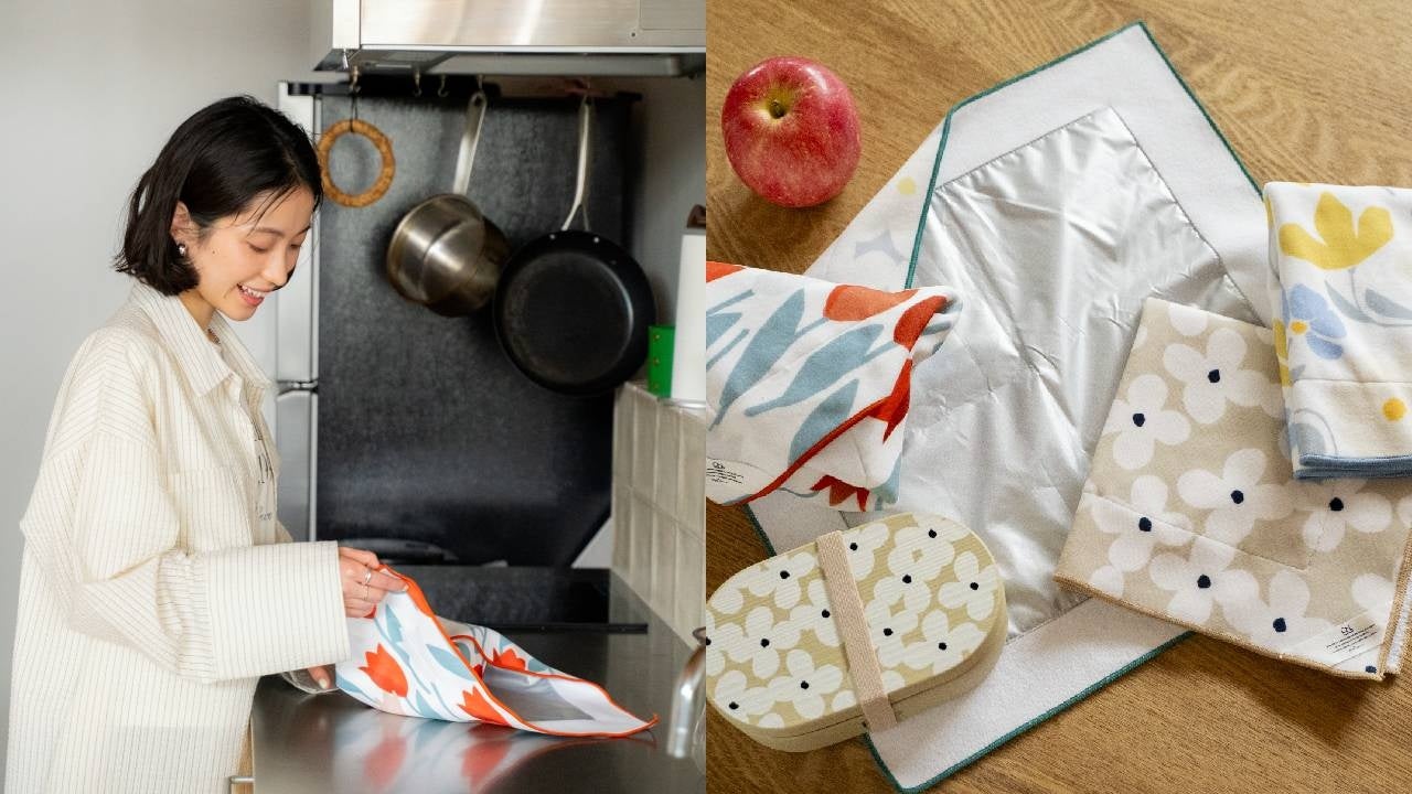 人気の「マルチくっつくろす」に保冷・保温機能がプラス!ランチボックスとカトラリーをしっかり包めるサイズです。吸水性の高い特殊マイクロファイバーで、生地同士がピタッとくっつくため、ゴムなしでもズレにくく、お子さまでも簡単に扱えます。ペットボトルやネッククーラーなど、温度を保ちたいアイテムも快適に持ち運べ、季節を問わず一年を通して活躍する、頼もしい一枚。