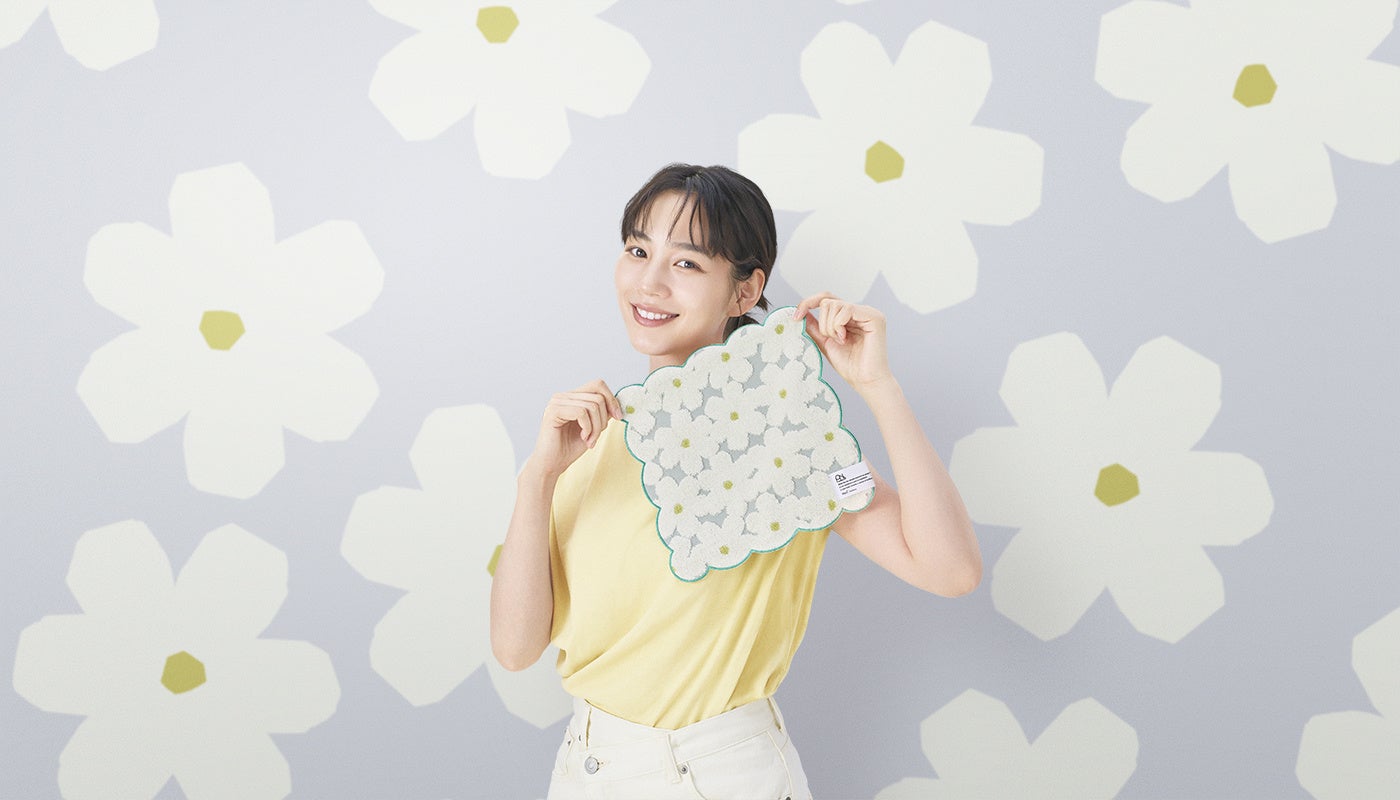 また、2026年春夏の新柄として「フロラージュオフ」が登場!優しい香りが漂う花畑をイメージしたフロラージュの柄が、のんさんの可憐な笑顔と重なります。その他のビジュアルには、鮮やかな色使いとチューリップが印象的な「ブルーミングチューリップレッド柄」など、約70種類の豊富なテキスタイルのなかから、のんさんの雰囲気にぴったりの柄をセレクトしました。
