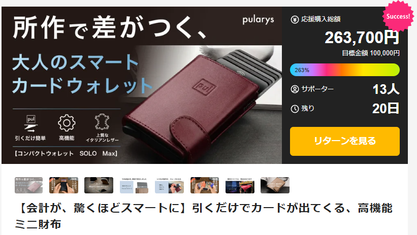 開始後またたく間に目標金額を達成し、2026年4月09日現在で目標金額の263%を超える支援を得ています。