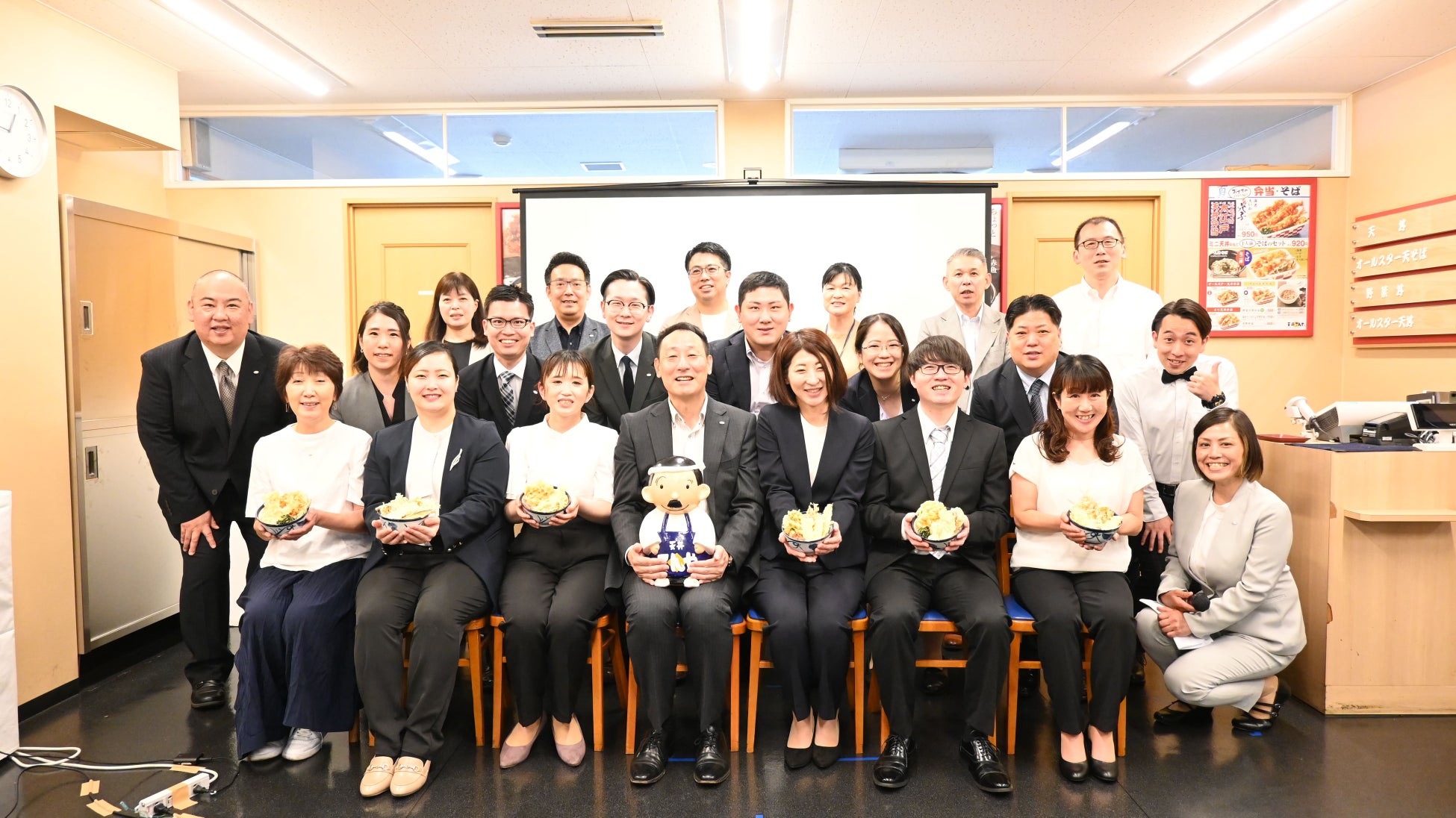 『俺と私の天丼コンテスト』を主催してくださった皆さん、全国販売ができるよう尽力いただいた皆さんのおかげで、この度、全国販売の機会をいただけたこと、福山曙店スタッフ一同感謝しております。スタッフが自信をもってお届けできる一杯です。天丼好きなスタッフたちが試行錯誤し考えぬいた商品です。見た目・香り・食感・味すべて良しの「いか旨天丼」。いかで始まりいかで終わり、最後には「旨い」と言える「いか旨天丼」をぜひご賞味ください。