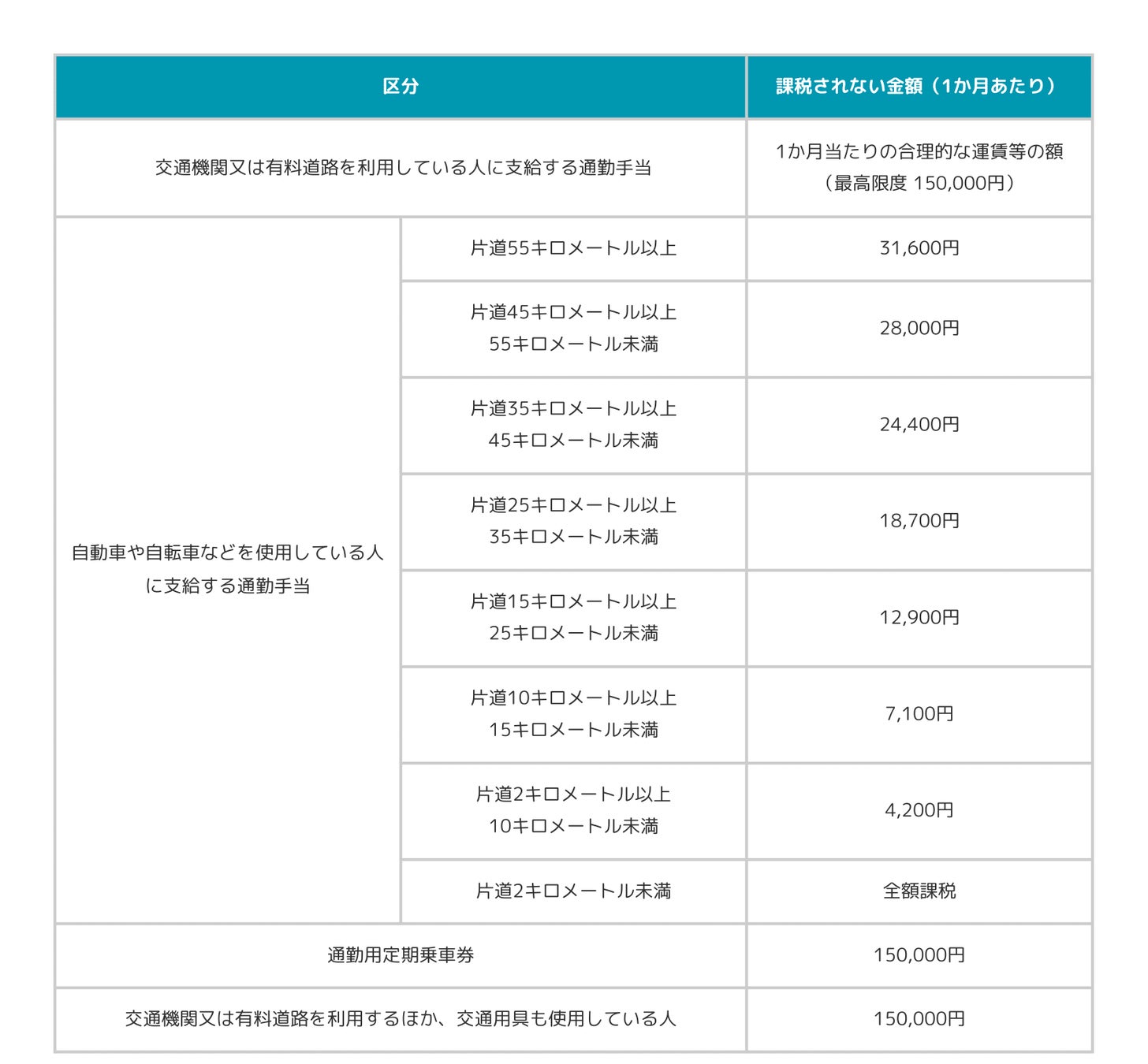 ▶1か月当たりの非課税限度額は次のとおりです。