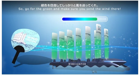 ①体験型アトラクション“wind vision attraction”:長さ約4m・高さ約3mのウインドハンター模型にうちわで風を送ると、シミュレーション航海が始まり、水素が製造、運搬、供給されるまでの様子を背面の大型スクリーンの映像で放映。風に連動し、模型の帆が拡縮、回転するだけでなく、風量によってエンディングシーンも変わるなど、模型と映像を連動させたゲーム感覚で遊びながら学べる、未来の都市パビリオンの中でも数少ない、来場者参加型のアトラクションです。また、体験に使用したオリジナルのうちわは来場記念のノベルティとしてお持ち帰りいただけます。