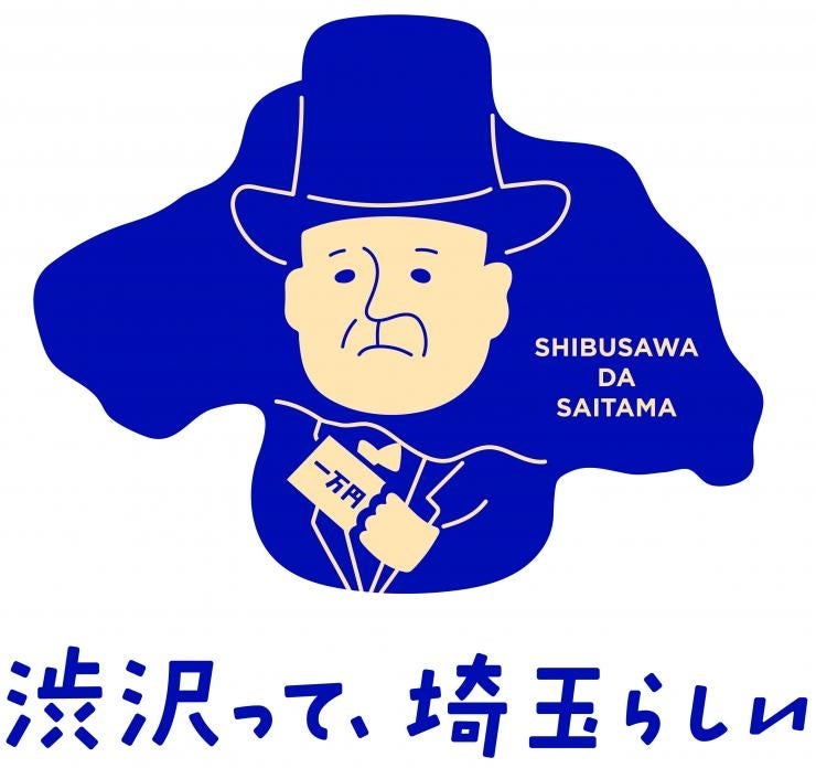 イラスト化した渋沢翁と埼玉県の形を組み合わせました。埼玉県の形にひるがえるマントや渋沢翁のトレードマークともいえるシルクハットを取り入れた、親しみやすいデザインとなっています。