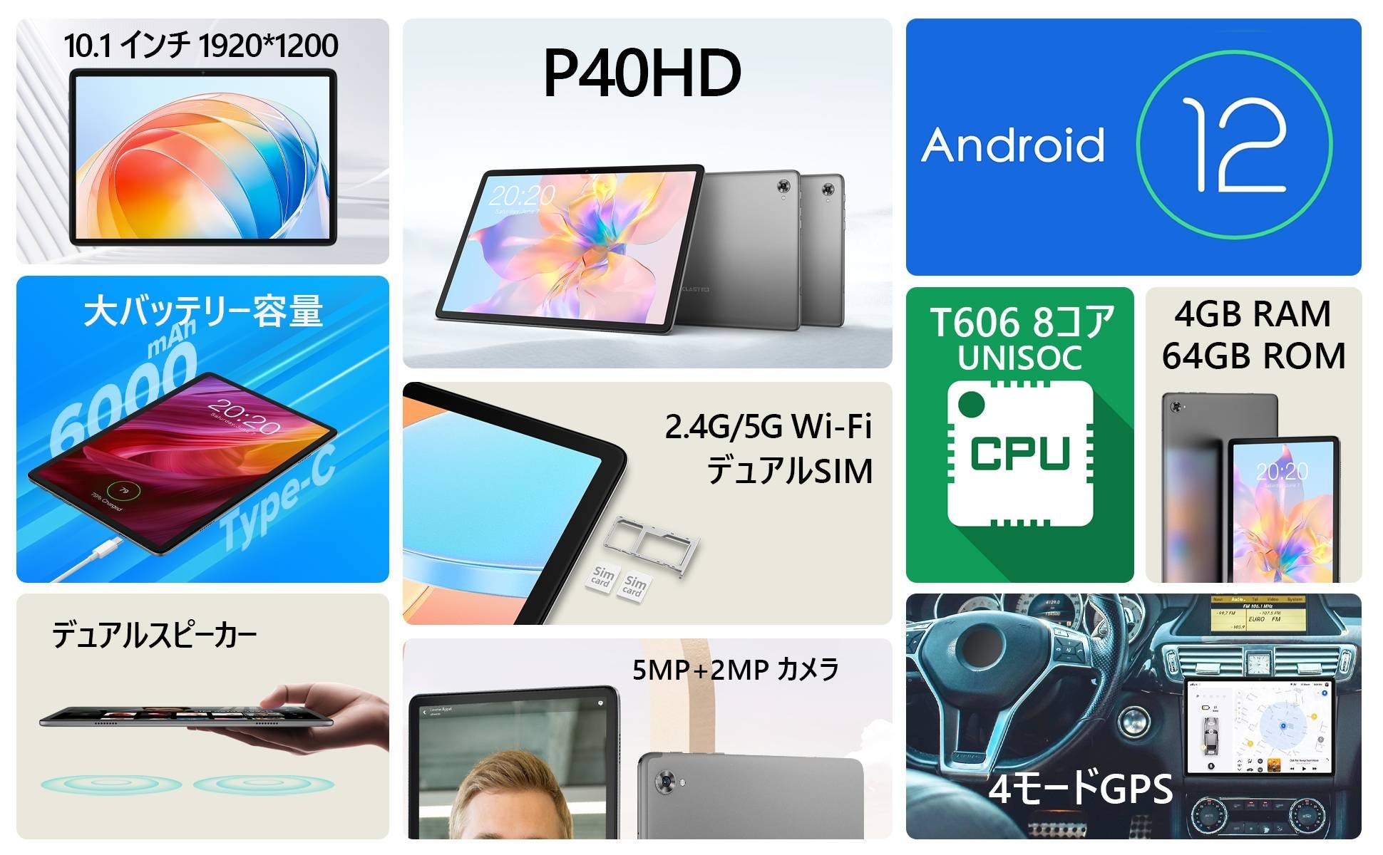 Teclastアップグレードタブレット「P40HD」セール再開しています。Android 12システム、インテリジェントセンサーでグレードアップタブレット体験を楽しめます。「P40HD 64GB」も最低値段で購入できます。