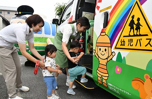 この日、園児たちは、保育所職員からバスを乗るときのマナー、乗車中の注意点などを学んだ後、みんな笑顔で順番にバスに乗車。園児は「初めてバスに乗れて嬉しかった」などと笑顔で話していました。