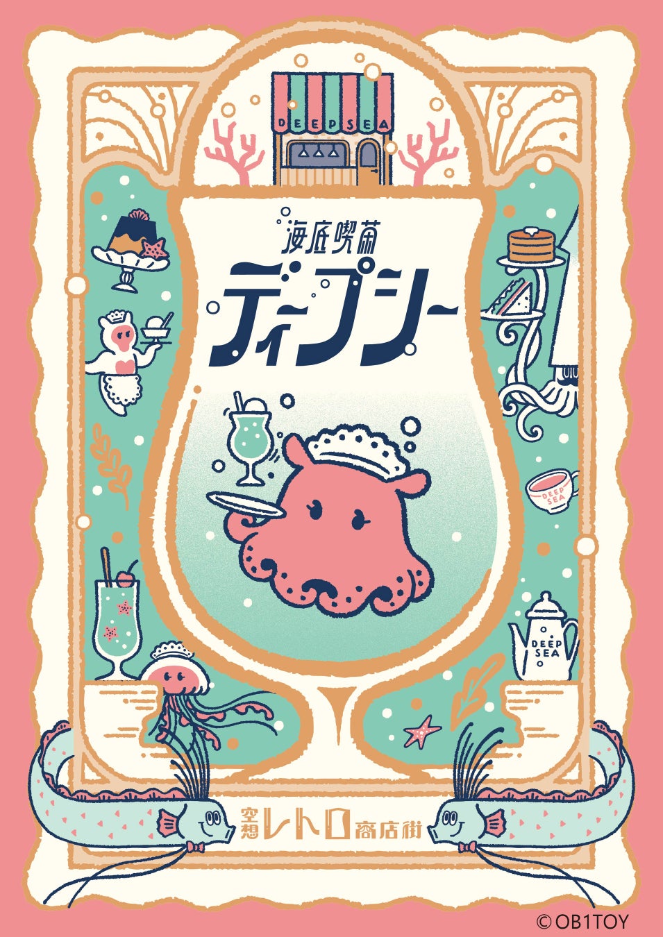 時間がゆっくり流れる不思議でどこか懐かしい商店街、通称「空想レトロ商店街」。レトロなお店やかわいいどうぶつたちをモチーフに、オビワン(OB1TOY)ならではの色彩やイラスト、タイポグラフィでストーリーのある世界感を表現しています。