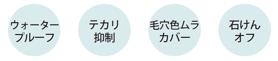毎日心地よく使っていただけるよう、肌への負担を考えた「4つのフリー処方(合成着色料・鉱物油・界面活性剤・パラベンフリー)」。スクワラン、セラミド*1、ビタミンC誘導体*2(すべて保湿)といった美容液成分も贅沢に配合。ウォータープルーフ、テカリ抑制、毛穴色ムラカバー、石けんオフ、SPF50+ PA+++。機能性にもこだわりました。