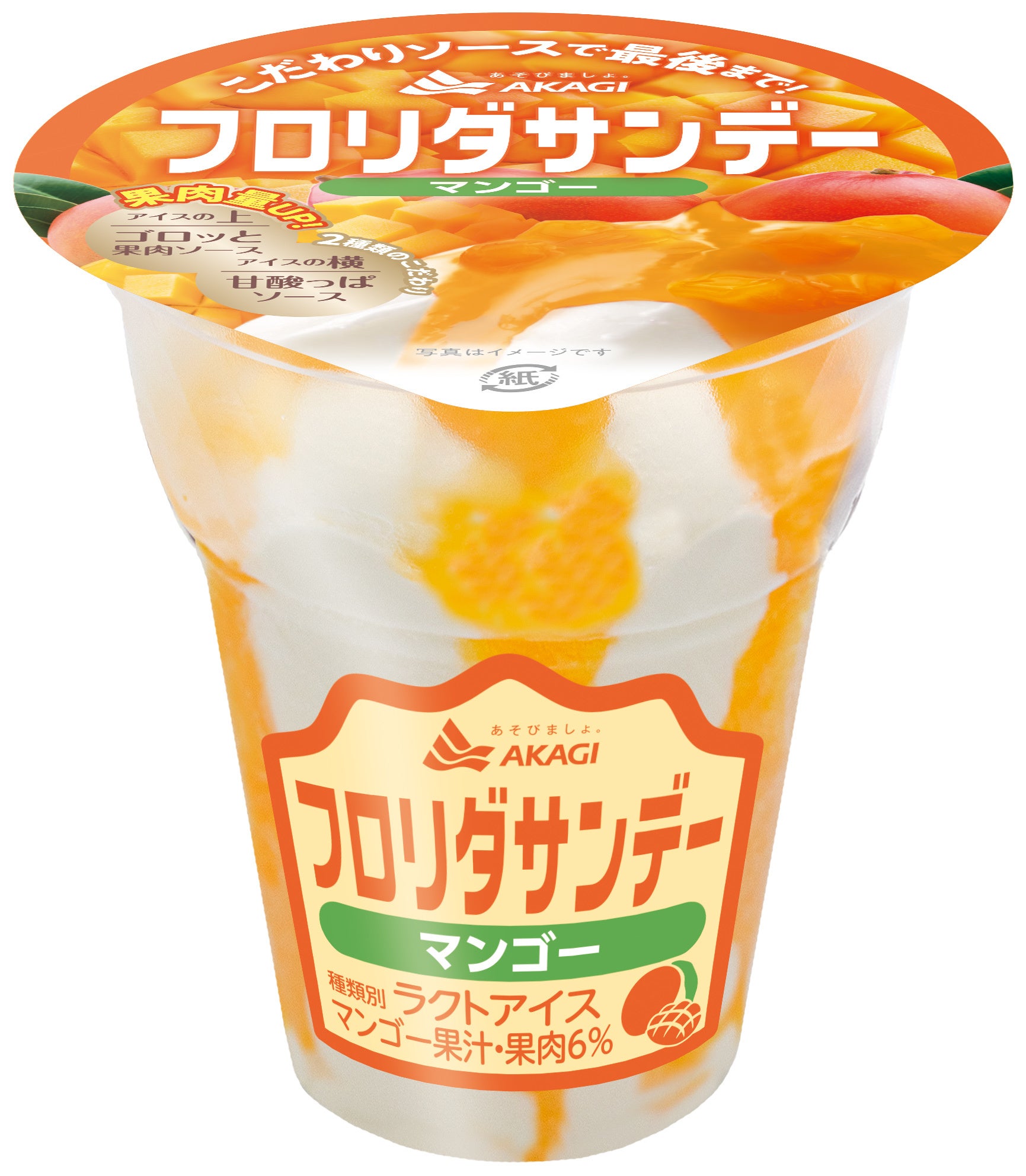 今回は、その一番の特長である果肉ソースをより感じられるように、天面ソースのマンゴー果肉量を20%UP(23年発売品比較)しました。進化したこだわりのソースで、ついつい最後まで食べ進めてしまう「フロリダサンデー」をお楽しみください。