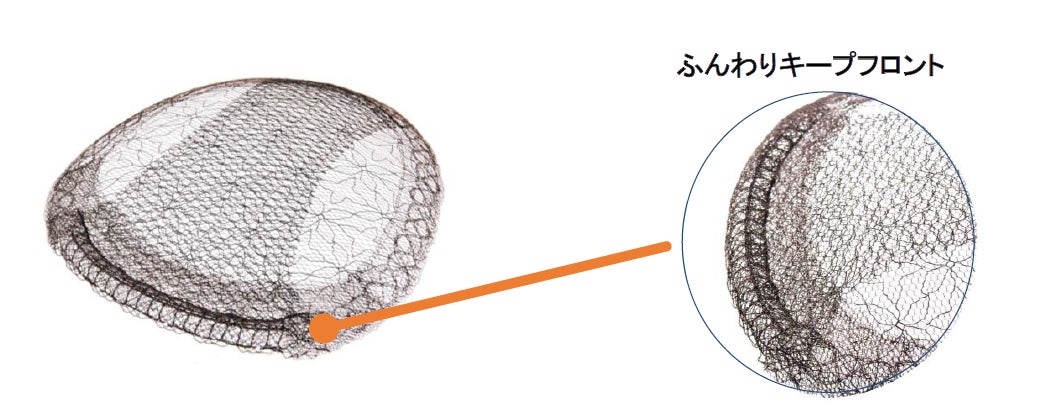 また、人の髪に近い「ツヤ」と「手触り」を目指した新毛髪を開発し、よりナチュラルな風合いをお楽しみいただけます。さらに、フロント先端部分に適度な丸みを持たせ、ウィッグと自毛を一体化させる新構造「ふんわりキープフロント」を採用。前髪部分の浮きをなくし、ふんわりとした自然な生え際の質感を実現しました。