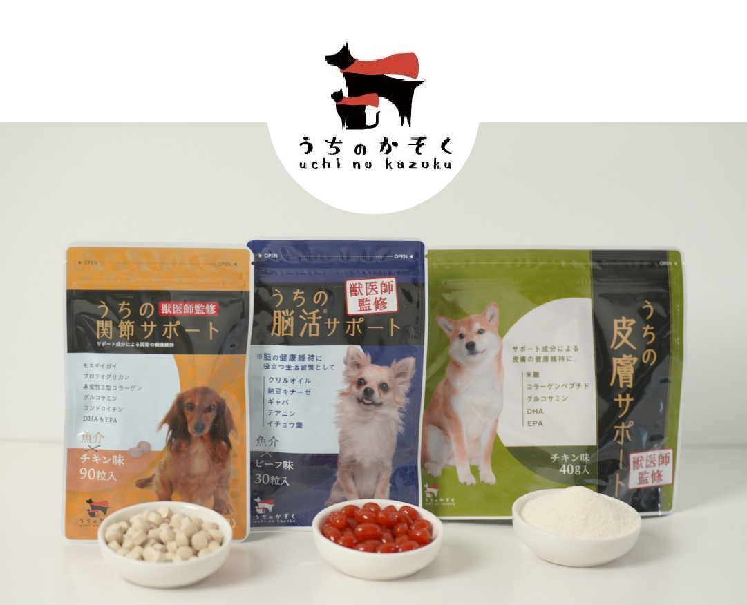 ”ともに、ながく” 愛犬愛猫の長生きと健康を少しでも支えられるように、獣医師監修のもと開発した無添加サプリ、「うちのサポートシリーズ」を展開。