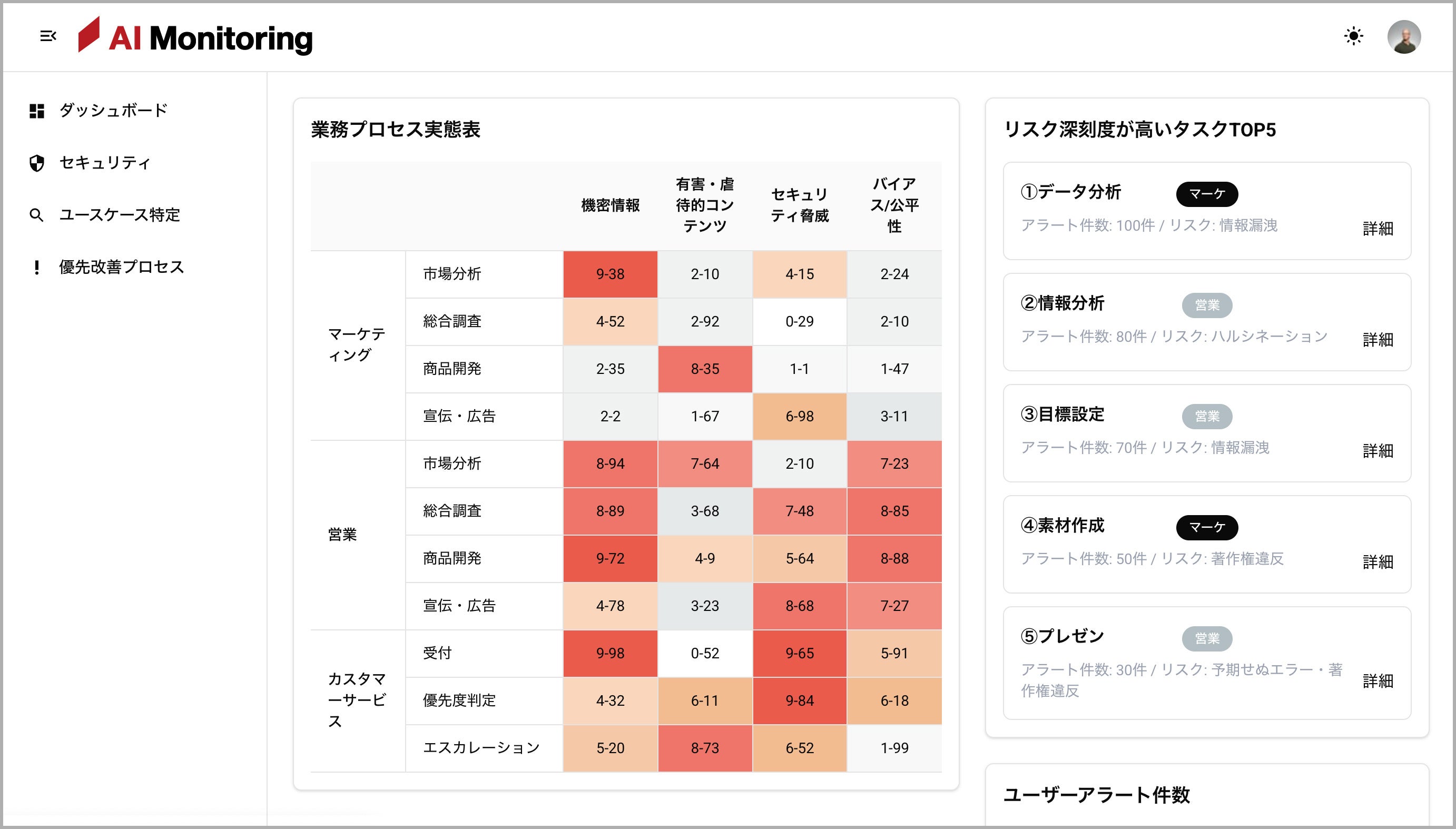 個人情報の入力、ガイドライン違反、不審アクセスなどを検出・レポーティング。