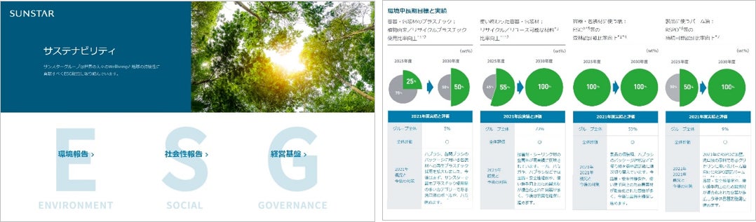 サンスターグループ(以下、サンスター)は、2021年のESG(環境・社会・企業統治)対応の年間活動成果をサンスターグローバルWebサイトにて2022年9月16日(金)に公開しました。創業100周年となる2032年に向けたサンスターグループ長期ビジョンの達成と国連が定めた持続可能な開発目標(SDGs)への貢献に向けたESG対応を強化しており、特に製品・包装材の石油由来プラスチック削減や、工場・オフィスへの再生可能電力導入によるCO2排出削減などを推進、環境中長期目標達成に向けた初年度の進捗も開示しました。