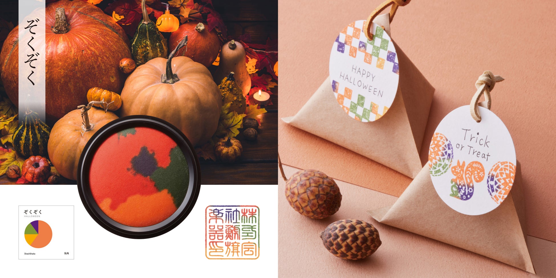 「るんるん」はクリスマスツリーのある情景を、「どきどき」はバレンタインの甘いチョコレートを、「ぞくぞく」はハロウィーンのかぼちゃとおばけの雰囲気を、「わくわく」はお正月らしい優雅さを、「うきうき」はバースデーケーキに灯るカラフルなロウソクをイメージして配色しています。一つ一つ手作りのため、配色にはばらつきがあります。