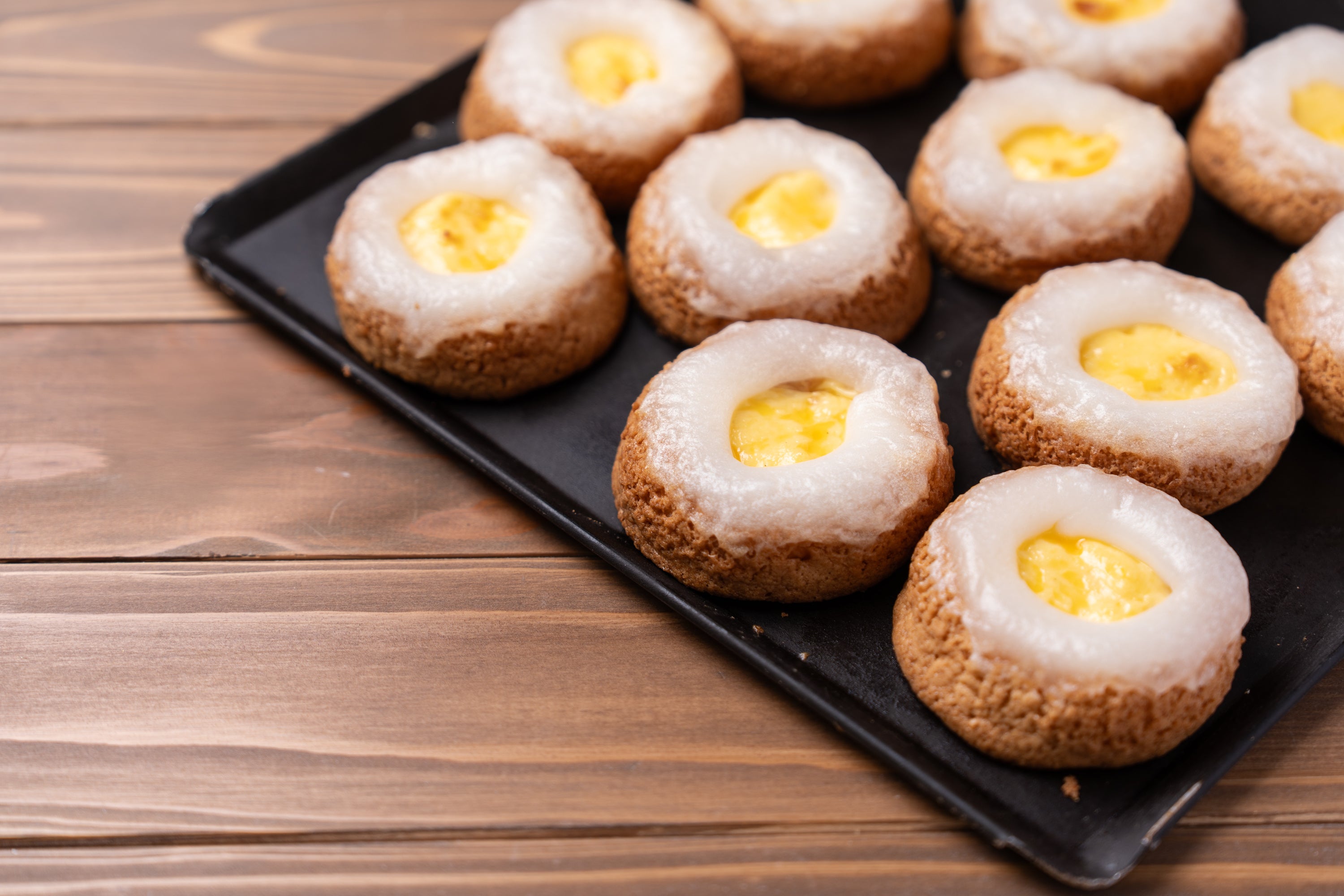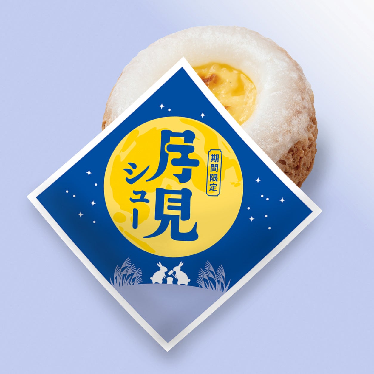 “月見シュー”は、日本の美しい伝統文化「お月見」をご家族やお友だちと笑顔で囲めるような、今までにないスイーツを開発できないかと何度も試作を重ね、試行錯誤の末に完成した、これまでにない新感覚のお月見スイーツです。思わず写真を撮りたくなる、まるで夜空に輝く満月のようなユニークな見た目も特徴で、一口食べると、お餅とザクザク食感のクッキーシュー生地、カスタードの味わいと「もちっ!ザクッ!とろり。」の3つの異なる食感が口の中で絶妙なハーモニーを奏でます。