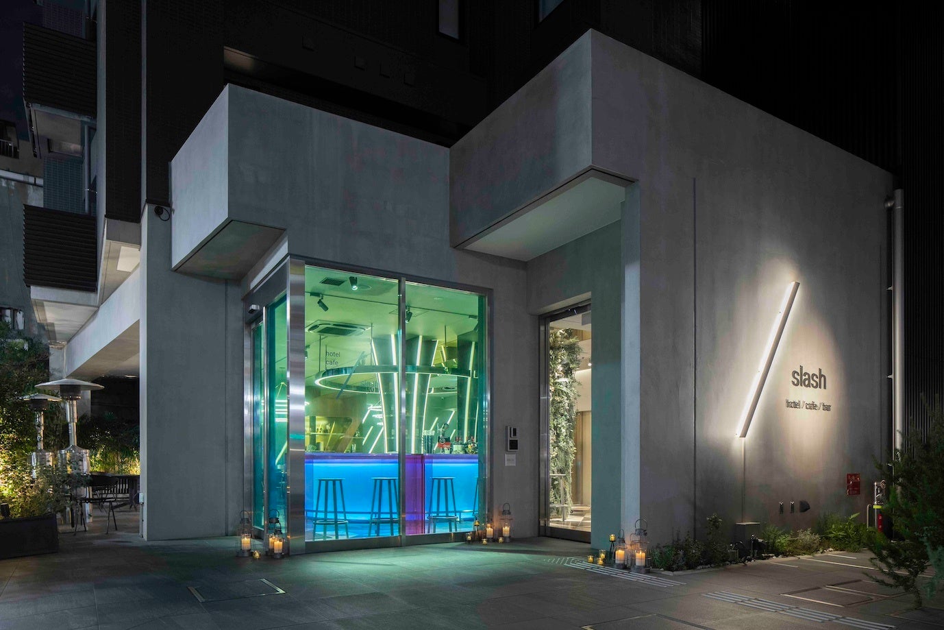 「slash(スラッシュ)」は、デジタルネイティブの視点で様々なデジタルツールを用いてユニークなゲスト体験を提供 する“デジタルホテル”という新しいタイプのホテルです。ホテル内に仕掛けられた様々なデジタルアート、ipad でのチェックイン、iPhone をリモコンとして操作できる客室、スクリーンに自身のスマホをミラーリングできるプロジェクターなどデジタルツールを駆使してユニークなゲスト体験を創出します。