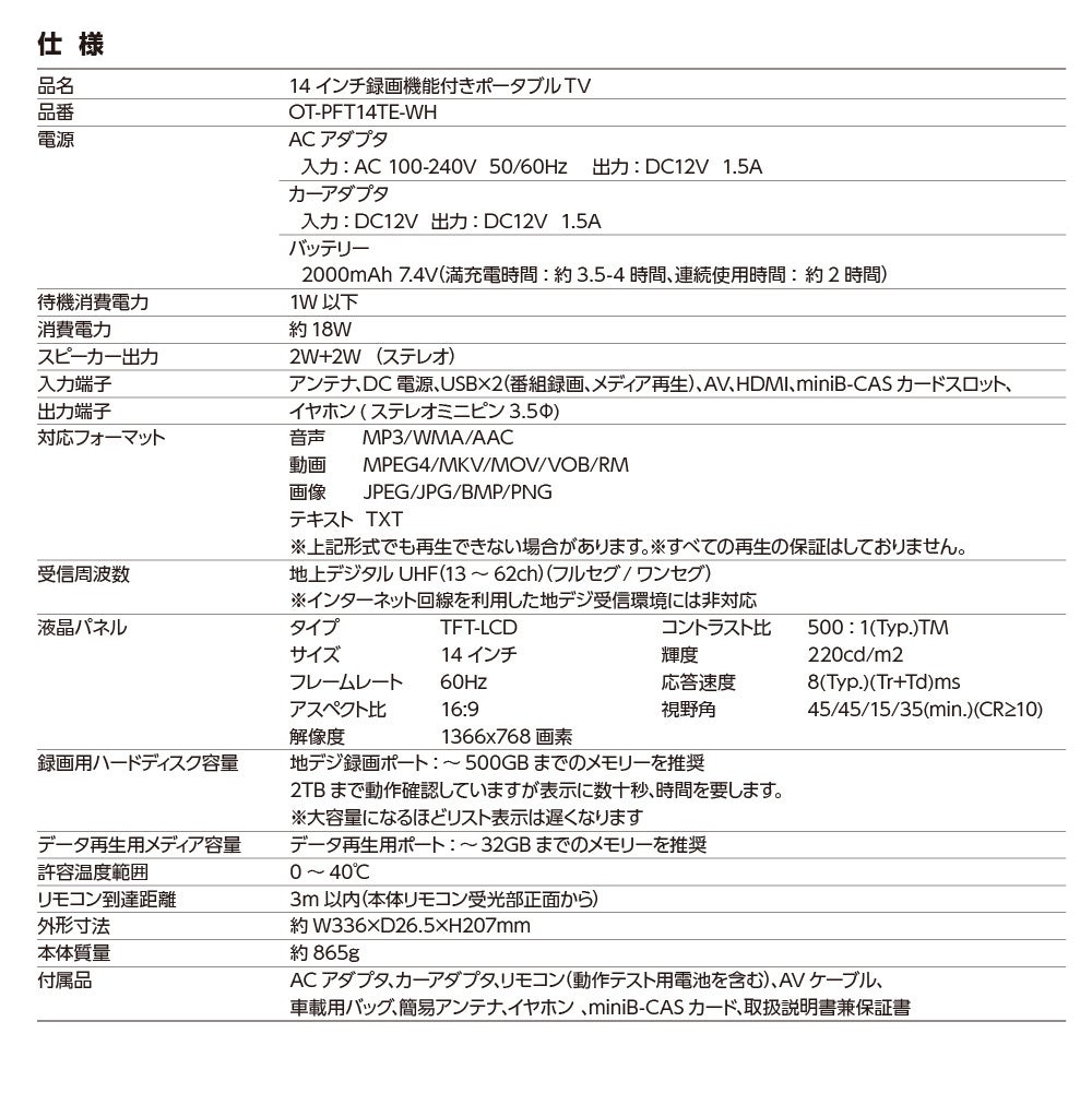 ダイアモンドヘッド株式会社「ブランド名:OVER TIME®(オーバータイム)」は、「OVER TIME® 14インチ録画機能付きポータブルTV ホワイト OT-PFT14TE-WH」を発売します。