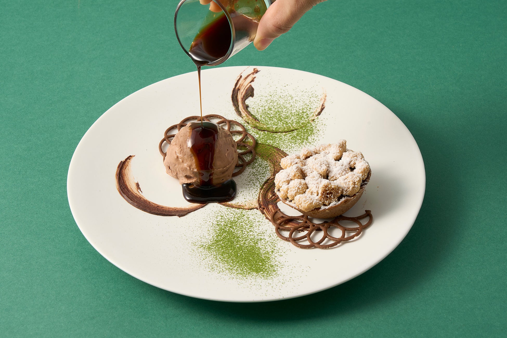 ほうじ茶とホワイトチョコレートのアイスと合わせると、ほうじ茶の香ばしさとホワイトチョコレートミルキー感が、ガトーショコラに香りやコクの味わいを足しさらに満足感をもたらします。