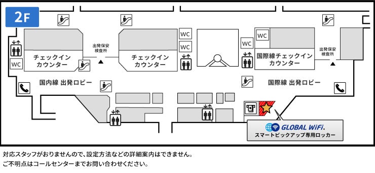 〔*4〕 国際線1階到着ロビー 総合案内横「J WiFi & Mobile」でのご対応となります。