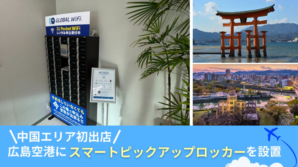 「グローバルWiFi®」レンタル機器などがカウンターに並ばずに受け取れる「スマートピックアップ」ロッカー(無人)を広島空港に設置。中国エリアに初出店。