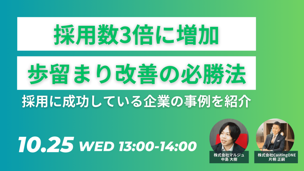 【アーカイブ配信・10/25(水)13:00~】【人材派遣会社向け】【採用数3倍】採用に成功している企業は実践済み!「歩留まり改善の必勝法」セミナーを配信
