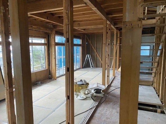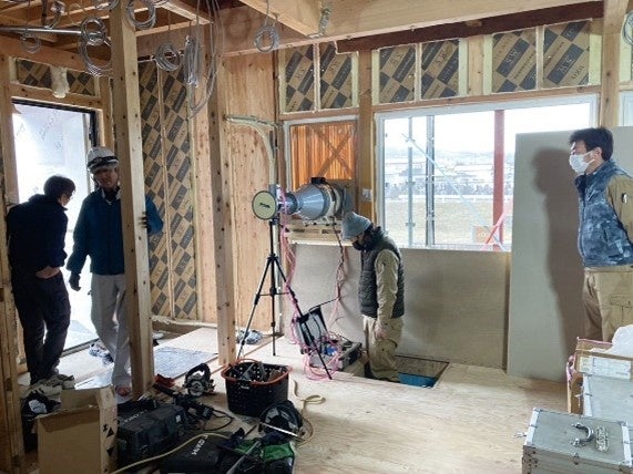 構造躯体は活かして耐震性を強化。気密測定を実施し、再生後の住宅性能も確認。