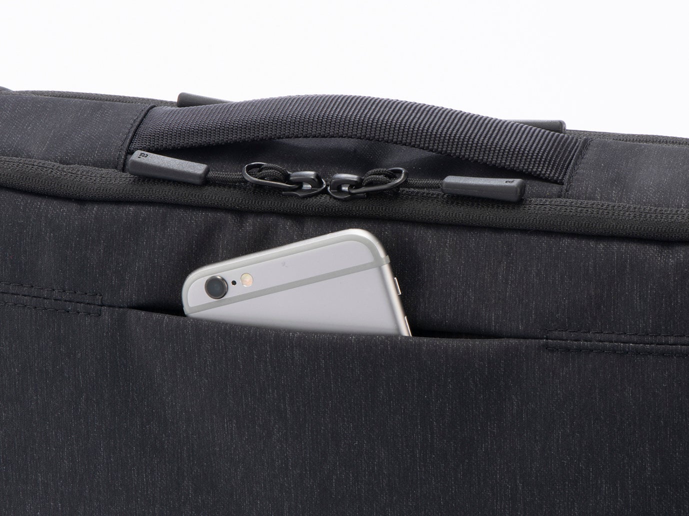 (上からアクセスできるポケット+左右からアクセスできるポケットで3方向をカバー)