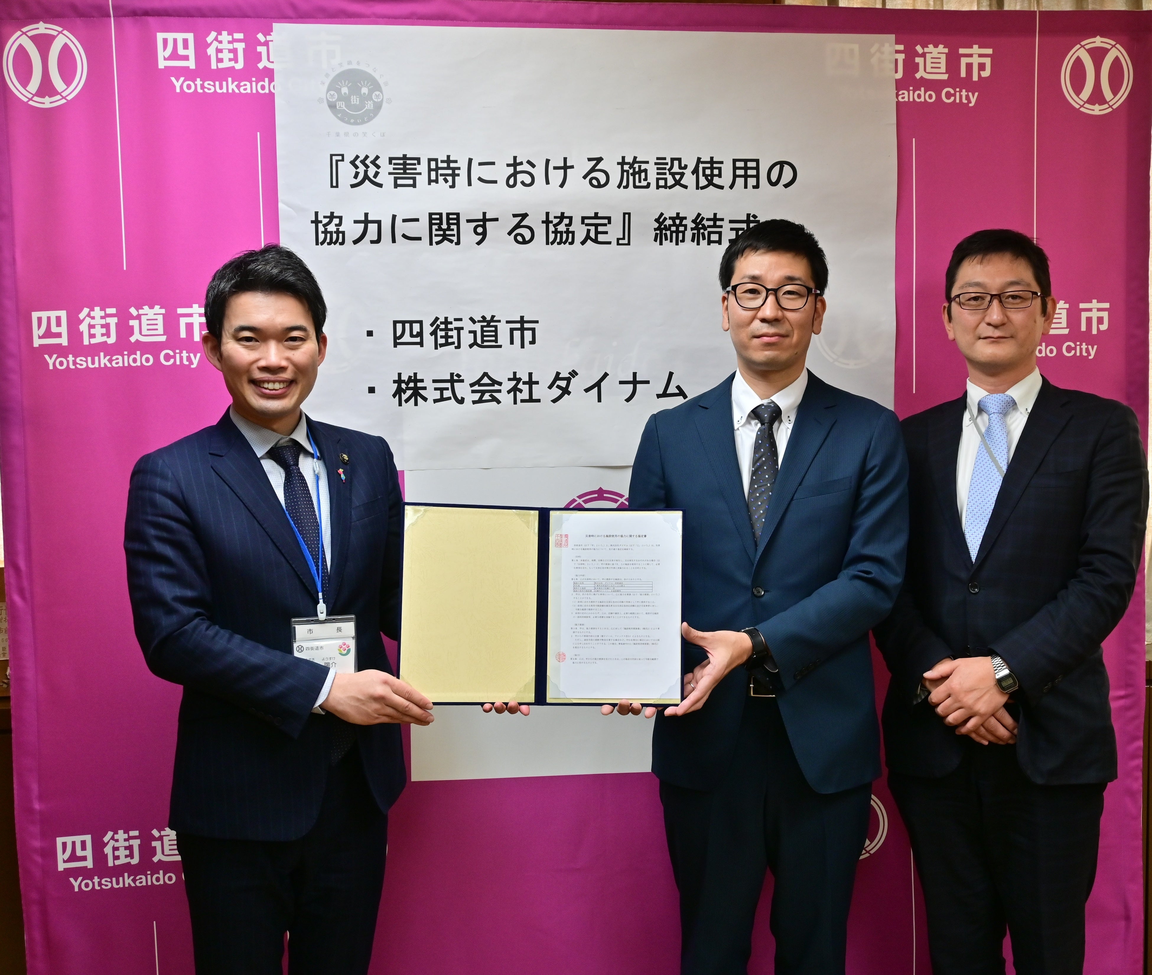 四街道市と株式会社ダイナムは、令和5年1月25日(水)に「災害時における施設使用の協力に関する協定」を締結しました。