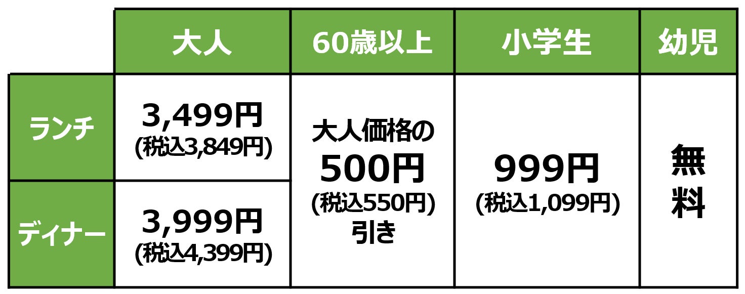 ※平日大人、60歳以上は記載の価格より100円(税込110円)引き