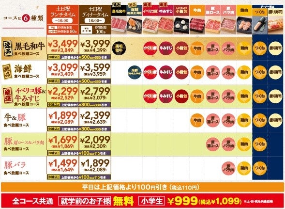 《 小学生価格&幼児無料 》 全コース同価格でご利用可能です!