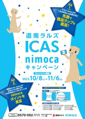 株式会社ニモカ(所在地:福岡県福岡市、代表取締役社長:田端敦)は、2022年10月8日(土)から11月6日(日)までの期間中、「道南ラルズ ICASnimocaでおトクにお買い物!」キャンペーンを実施いたします。