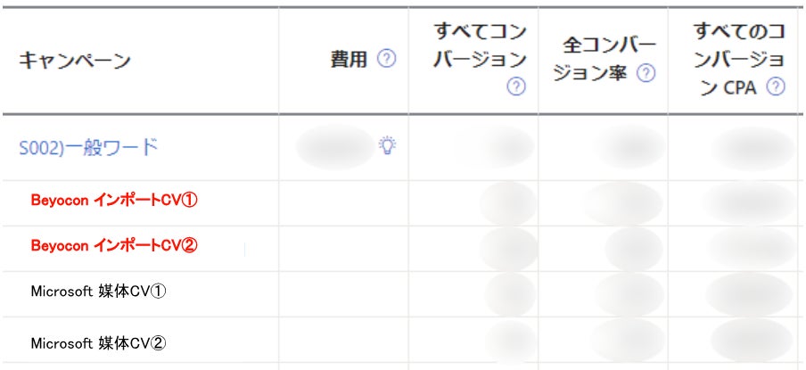 ▽Microsoft広告にBeyoconコンバージョンデータをインポートした例
