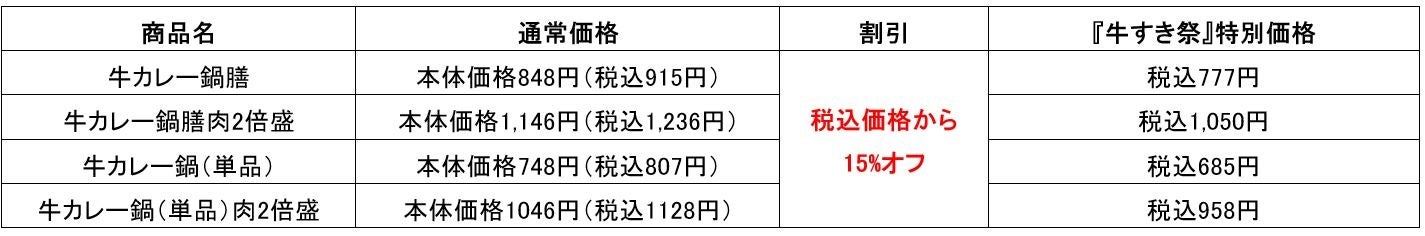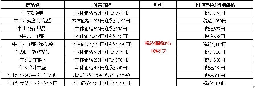 「牛すき鍋膳」と「牛カレー鍋膳」を含む12商品を税込価格から10%オフする『牛すき祭』を本日より開催