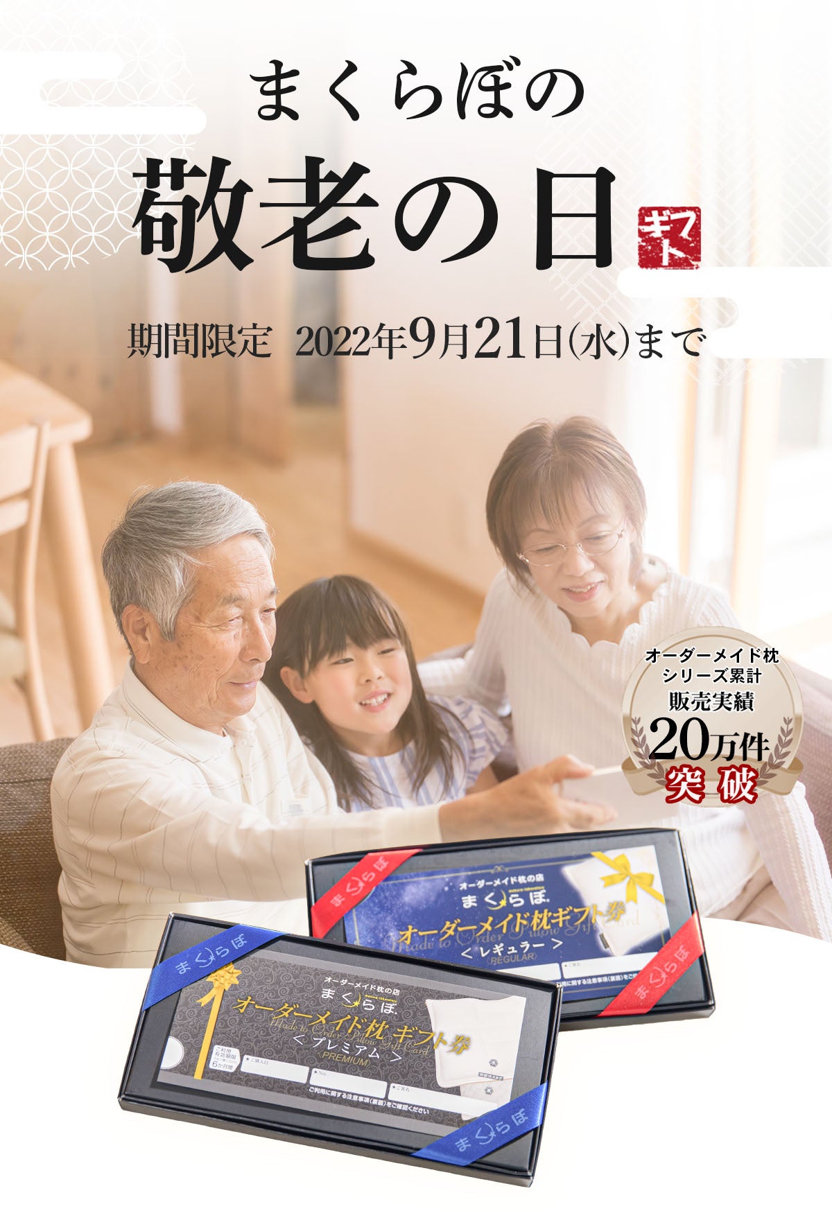 - 敬老の日キャンペーン「オーダーメイド枕ギフト券」セット