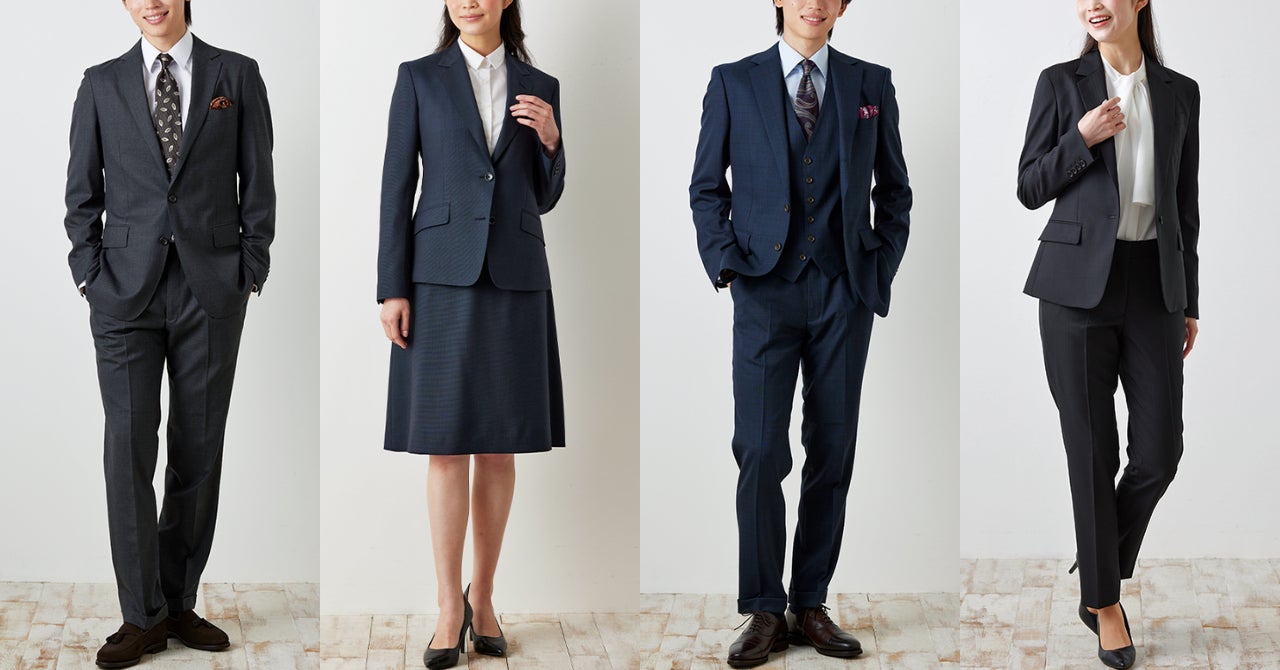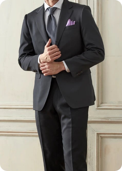 定番なカラー(ブラック、チャコールグレー、ダークネイビー)はもちろん、ストライプや光沢があるスーツなら長く着用できます。