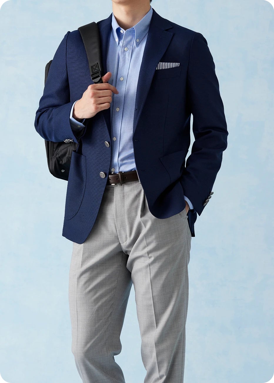 近年は、在宅勤務の普及やオフィスカジュアルの浸透、面接時の「服装自由」指定など、ビジネスシーンにおける服装の多様化が進んでいます。そのため、インターンシップ期間中だけでなく、面接時や入社後にも着用できる色・柄のスーツや、オフィスカジュアルにも対応しやすいジャケパン・セットアップ希望の学生も増えています。