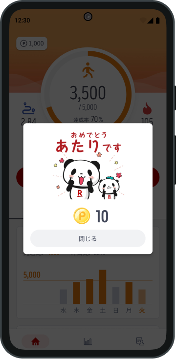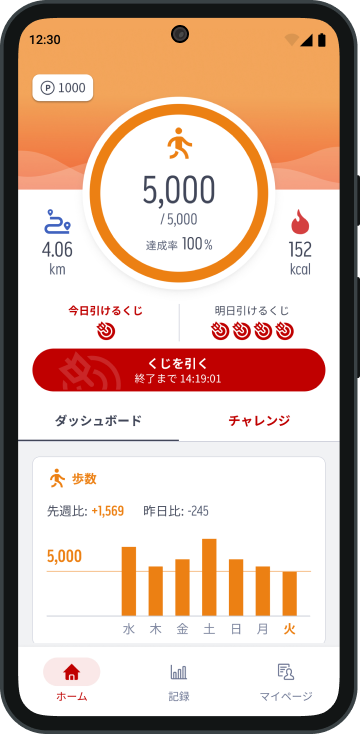 3. 1日5,000歩以上達成し、アプリのホーム画面上で5,000歩以上の歩数を確認