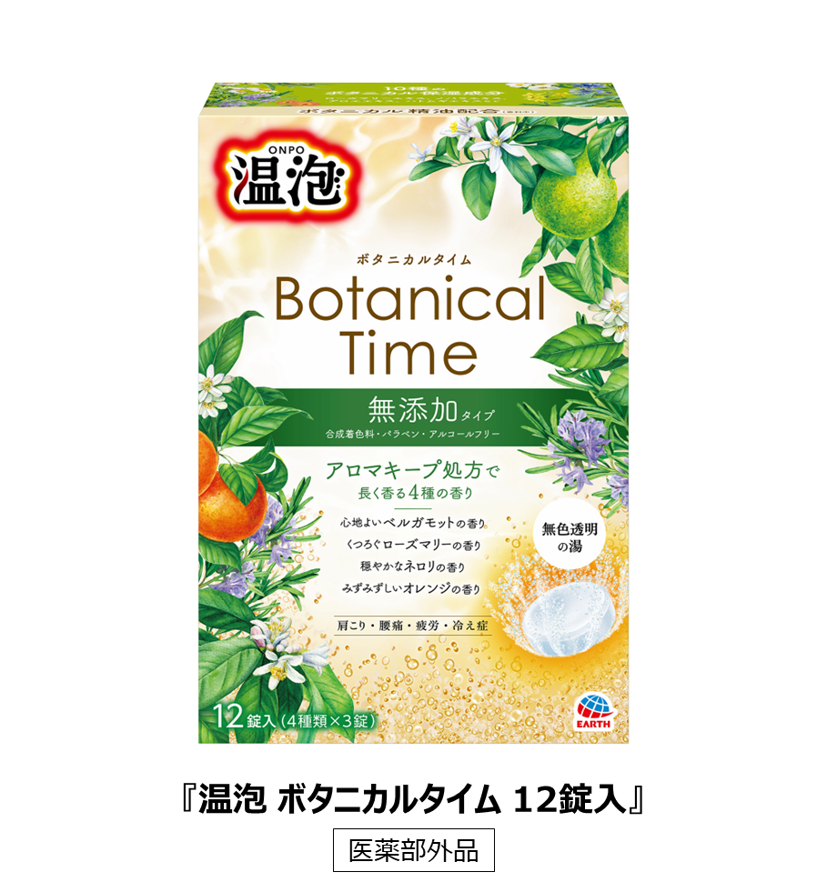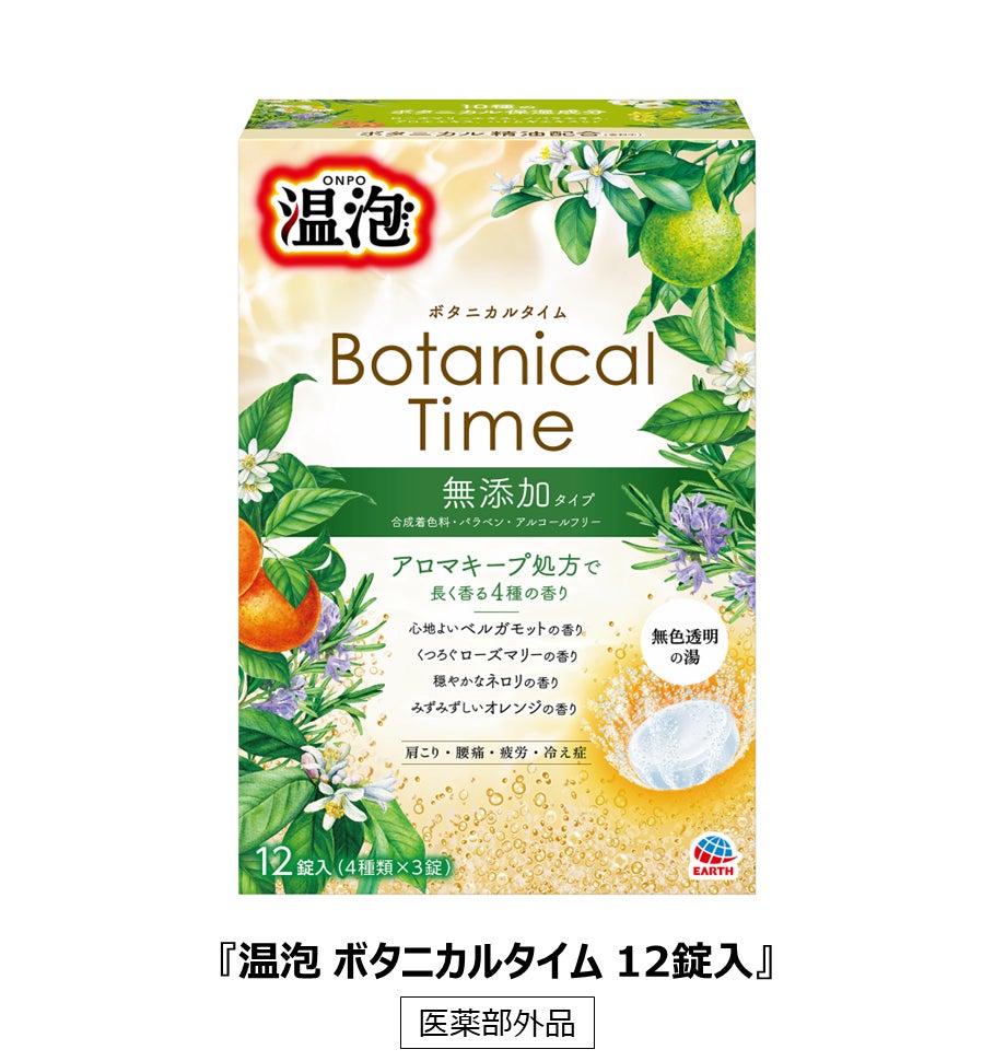 アース製薬が合成着色料・パラベン・アルコール不使用の無添加タイプの入浴剤『温泡(おんぽう) ボタニカルタイム』をリニューアル!