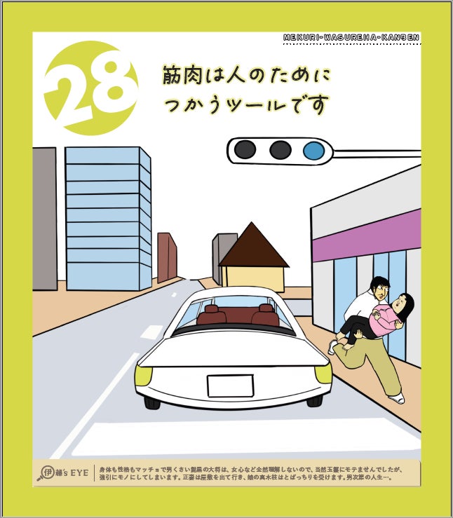 「しきぶちゃん」を主人公とする『超現代風源氏物語』は、まるで『源氏物語』のように色恋や数々のアクシデントを描く長編マンガ。今回、その『超現代風源氏物語』の場面をセレクトしています。何年でも使える、1~31日の万年日めくりカレンダーで、ニヤッと笑える言葉とイラストをいつまでも楽しむことができます。卓上でも壁掛けでも使える仕様です。