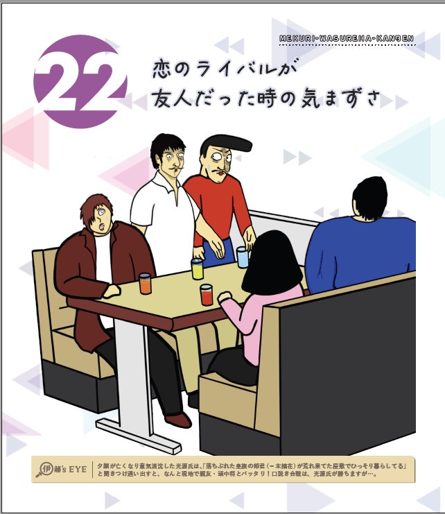 日本一生徒数が多い社会科講師伊藤賀一先生のコメント伊藤’sEYEは、『超現代風源氏物語』と『源氏物語』を照らし合わせて、ためになる豆知識などを掲載しています。現代と平安が混じり合うコメントもクスッと笑えて面白い!