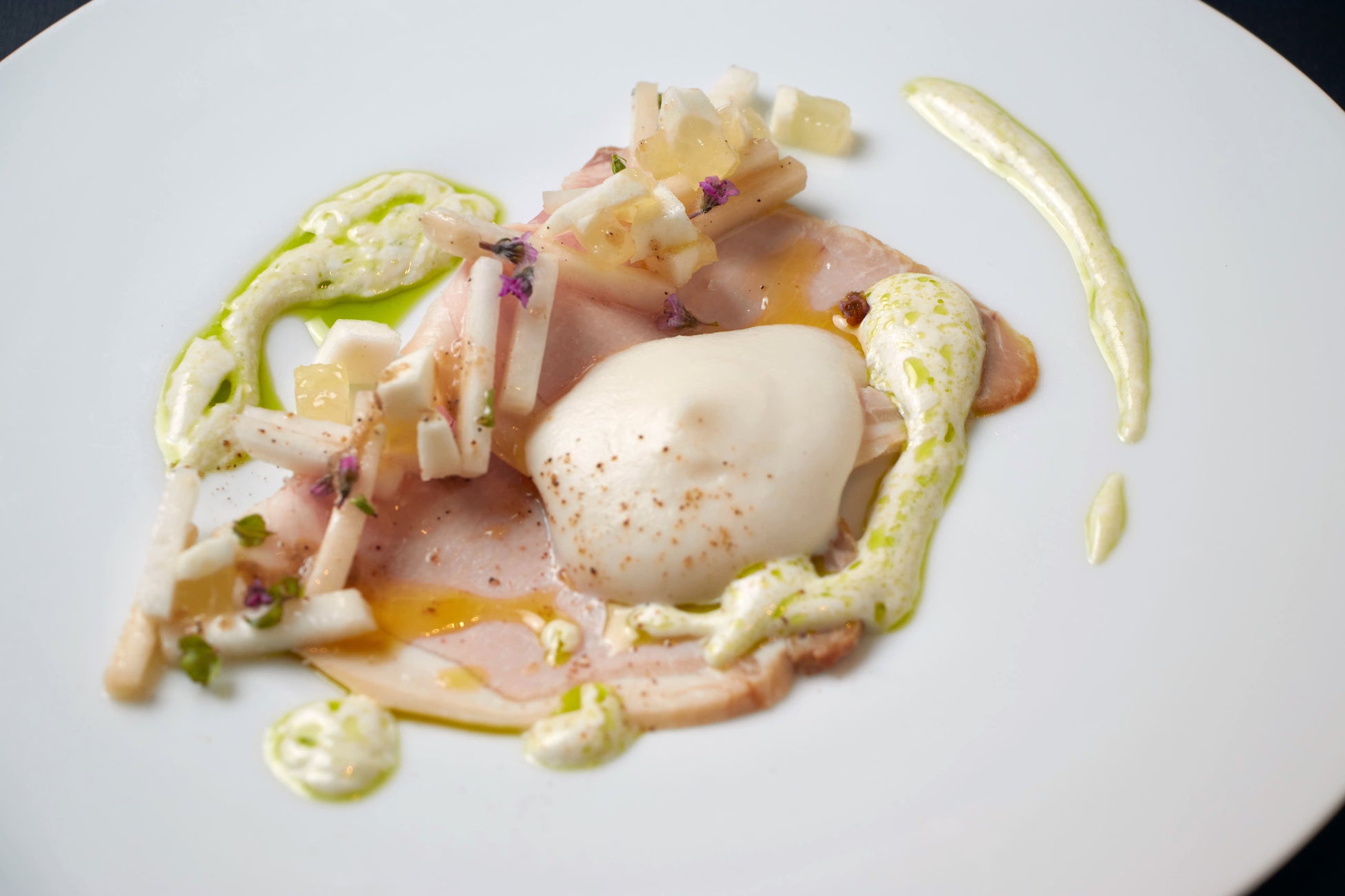 ・高知県産 四万十ポークのロースハム アーモンド 蕪のエスプーマ
