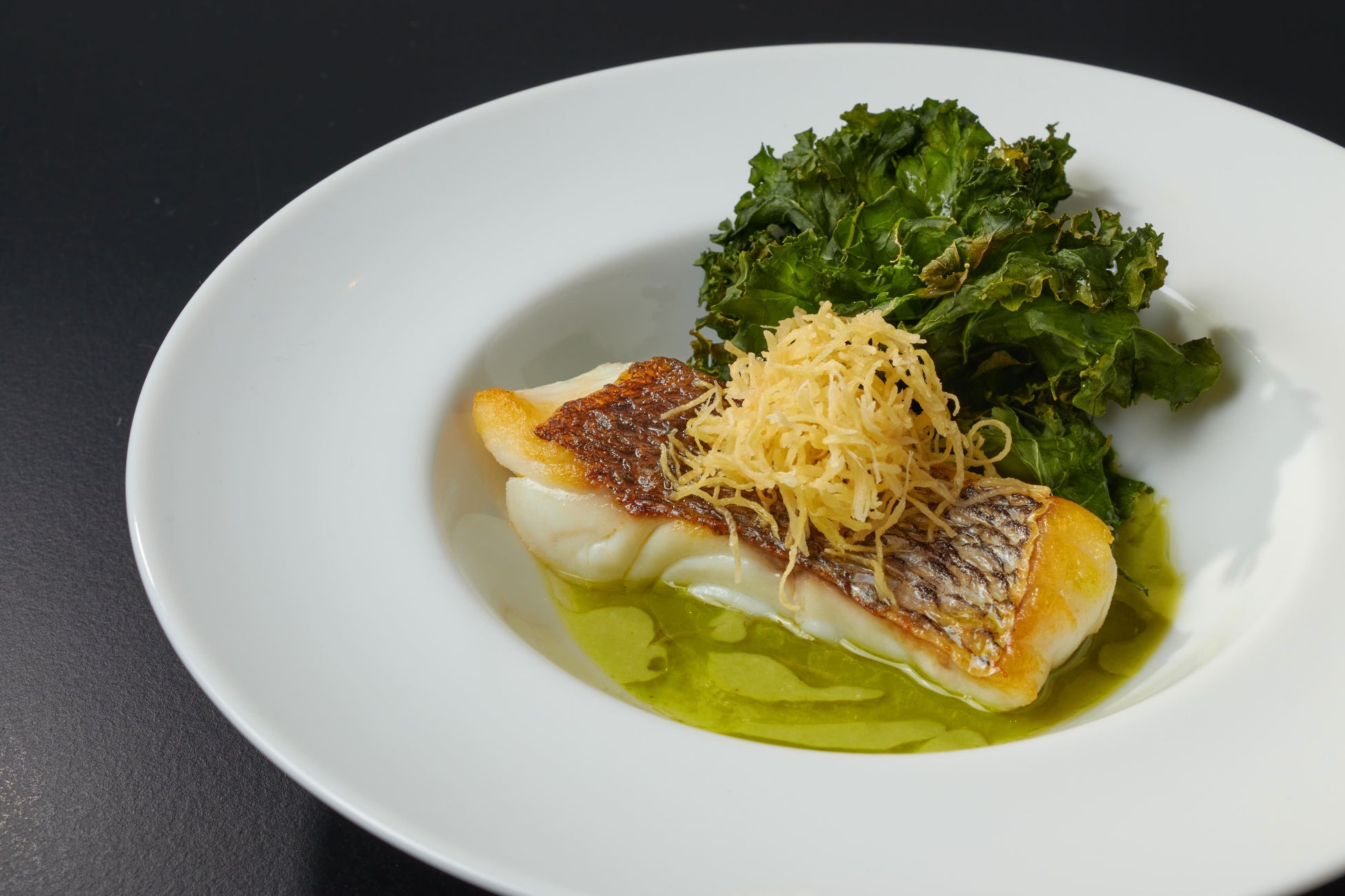 B:鮮魚のポワレ キャベツのピュレをソースに 旬野菜と高知生姜のアクセント