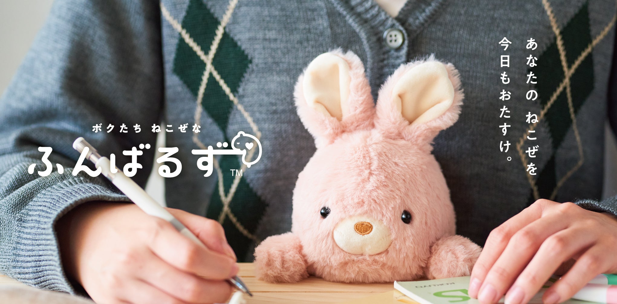 『ふんばるず』は、机から落ちないようにふんばっている、ねこぜなどうぶつたち。机とおなかの間に挟むことで、ねこぜなあなたを助けてくれるぬいぐるみです。