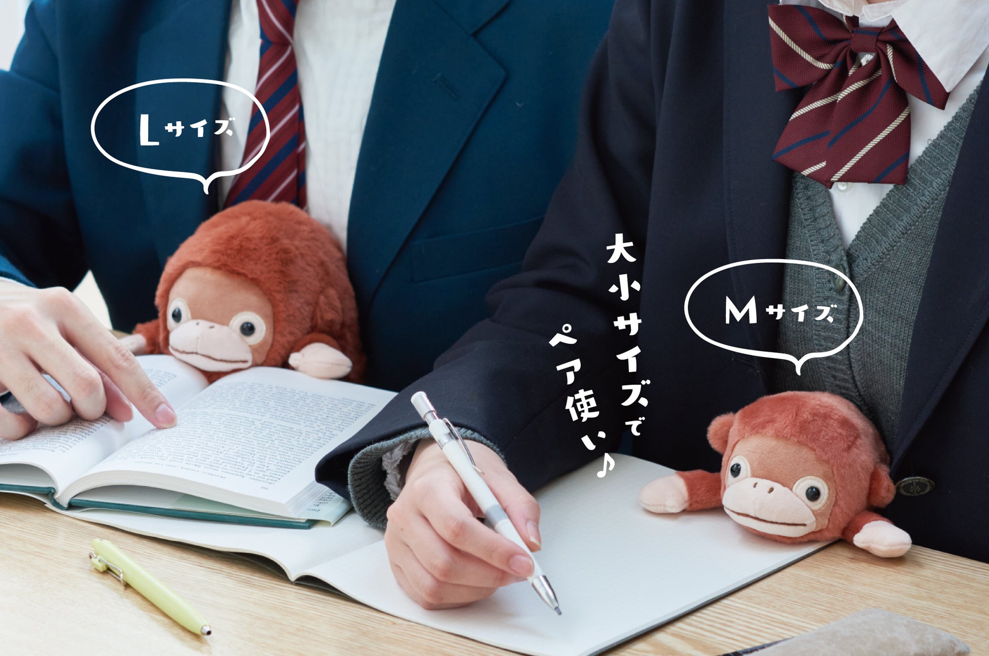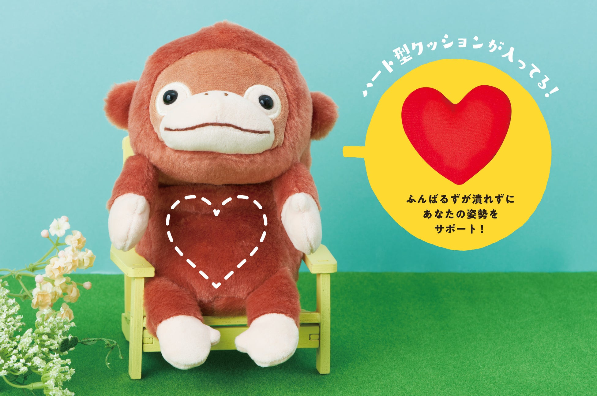 Lサイズと同じように、ぬいぐるみの中に入っているハート型のクッションが芯材となり、背筋がピンと伸びます。