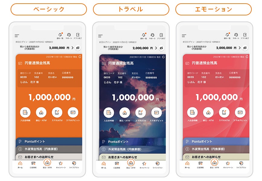 | 2 | 着せ替え機能の追加 | アプリログイン後のトップ画面の背景をお好みのカラーに選択・変更できる着せ替え機能を追加し、お客さまのお好みのデザインに変更できるようになります。 |